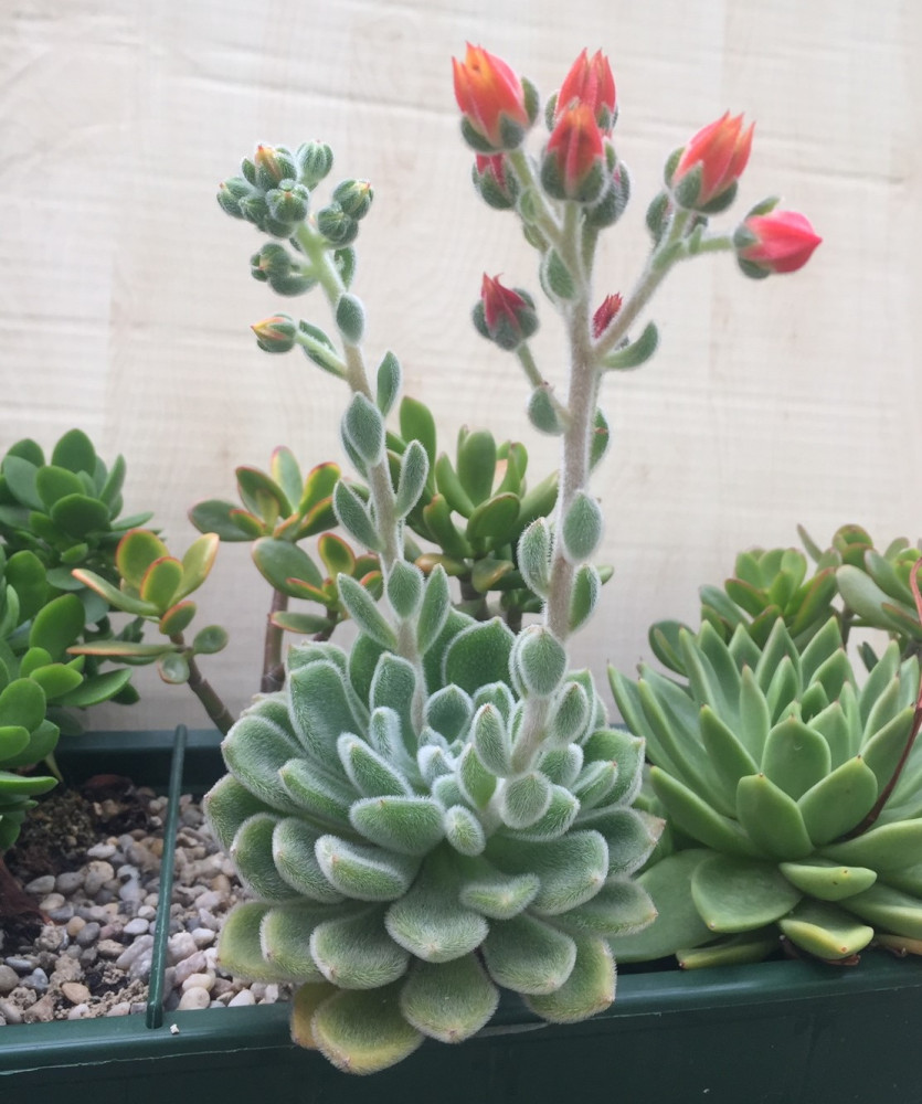 Amerikai kövirózsa (Echeveria) egyik különleges fajtája. Lenyűgözően szőrös levelekkel és mutatós virágokkal rendelkezik. 5 cm hosszú és 2 cm széles levelei spatula vagy fordított tojásdad alakúak. A levelek bőrszövete sötétzöld, melyet fehér szőrök borítanak. Virágai kívül narancsvörösek, belül narancssárgák, gyönyörűek, lásd saját fotókat. Mexikóból származó növény.